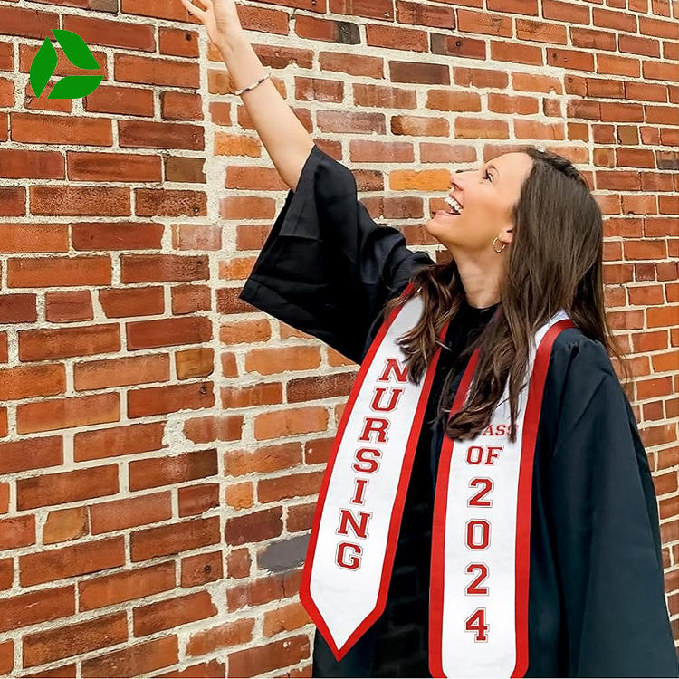 Sublimation printing is the gold standard for custom grad stoles—it delivers vibrant, long-lasting colors that won’t fade, peel, or crack, even after years of being displayed. But sublimation-ready fabrics (like premium polyester) are designed to hold their shape, which means choosing the wrong size will be extra noticeable.