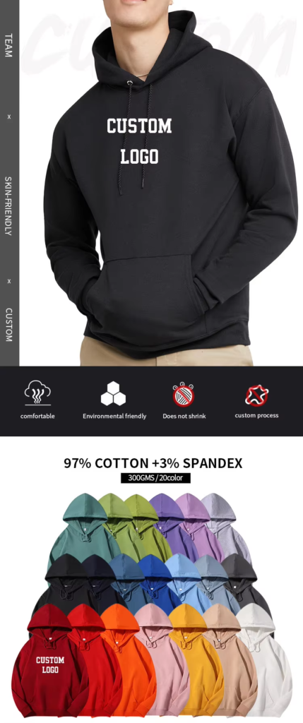 This heavyweight pullover hoodie is made from 300gsm cotton spandex fabric, offering a perfect blend of comfort and durability. It features an oversized fit, drop shoulder design, and is suitable for men who prefer stylish yet functional sportswear. The hoodie is anti-pilling, eco-friendly, and windproof, making it ideal for various seasons. Customization options include multiple colors, logo printing methods, and embroidery services to create personalized designs.
