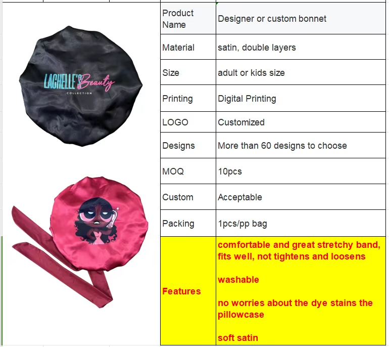 - Product Name:Customized Double Layers Satin Designer Bonnet